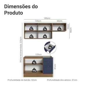 Profundidade: 52 cm (módulos inferiores) 31 cm (aéreos)