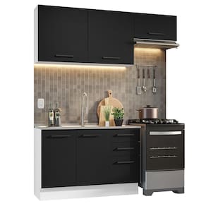 O acabamento da estrutura é branco e o das portas e frentes é preto. É feito em Pintura Poliéster, com 7 camadas de proteção resistentes a álcool, água e calor.