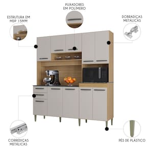 Com Armário de Cozinha Compacta 180cm Regina P11 Damasco/Off White da Mpozenato você terá tudo o que precisa ao seu alcance.