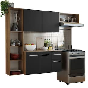 A cozinha é construída com materiais duráveis e de qualidade, como puxadores com alumínio e corrediças e dobradiças metálicas. Por seu tamanho, fica perfeita em apartamentos e casas que precisam de total otimização do espaço.