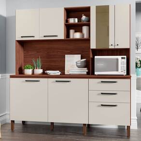 Você está procurando uma Cozinha Compacta de alta qualidade? Então você veio ao lugar certo! Conheça a Cozinha Compacta 7 Portas 2 Gavetas Giga Balcão com Tampo K02 Nogueira/Off White, da Mpozenato.