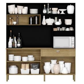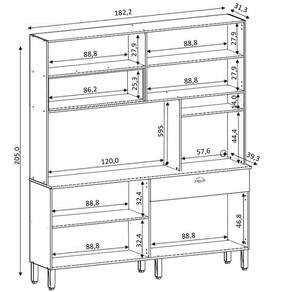 Armário de Cozinha Compacta 182cm Mary K02 Freijó/Nero - Mpozenato
