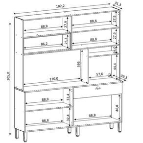 Uma Cozinha Compacta fabricada com materiais de alta qualidade possui 8 portas, uma gaveta, dobradiças e corrediças telescópicas 100% metálicas, prateleiras internas, passa fio adesivo, pés reguláveis em plástico resistente (polipropileno) e puxadores ergonômicos em plástico resistente (poliestireno), todos os processos de acabamento em pintura com secagem em luzes UV. Conta também com amplo espaço para Balcão de apoio de utensílios e micro-ondas, uma Cozinha Completa para auxiliar o preparo das suas refeições.