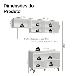 - 52 cm de profundidade no balcão e 31 cm nos aéreos