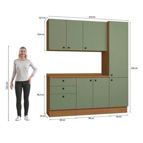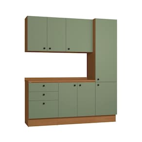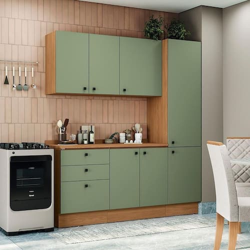 Acabamento: 100% BP / Pintura Touch | Cor: CANELA/VERDE FREVO | Corrediças: Telescópicas | Dobradiça: Com Amortecimento | E possivel montar o produto sem os pés?: Sim | Garantia: 3 meses para defeito de fabricação | Gavetas: Externas | Matéria-prima: MDP / MDP BP | Peso suportado por cada prateleira: 7 kg | Peso suportado por gaveta: 6 kg | Puxadores: Metálicos | Quantidade de gavetas: 3 | Quantidade de portas: 1 / 2 | Quantidade de prateleiras: 1 / 6 | Sistema de montagem: Parafuso Philips | Tipo de porta: Bater | Tipo de garantia: Garantia do fabricante | Montagem: Necessita montagem | Duração da garantia: 3 meses | Tipo de móveis de cozinha: Combo de móveis de cozinha | Requer montagem: Sim