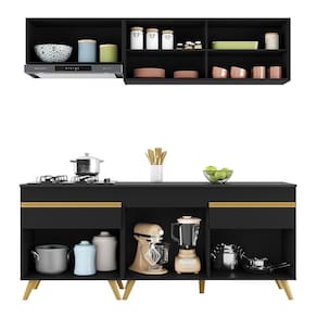 Armário De Cozinha Compacta 190cm Veneza Multimóveis V3707 Preto/dourado Preto/dourado