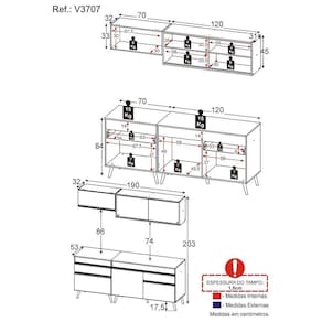 O Armário de Cozinha Compacta 190cm Veneza Multimóveis V3707 tem um excelente custo benefício e um amplo espaço interno. Produzido em MDP com acabamento acetinado (cerca de 20% de brilho), que garante maior durabilidade e resistência, possui corrediças metálicas (mais leveza no manuseio), pés retrô em polipropileno, que deixam o ambiente mais estiloso, puxadores em ABS e tampo em MDP 15mm com pintura de alta resistência. Os módulos são individuais e você pode montar da maneira que se adaptar melhor ao seu ambiente. O balcão possui tampo removível (compatível com pia de 120 cm). Para deixar sua cozinha mais bonita e completa possui vidro reflecta, compartimento para utensílios mais altos e balcão para cooktop.Conteúdo da Embalagem:1 (um) armário aéreo 120cm1 (um) balcão com tampo 120cm1 (um) balcão com tampo 70 cm1 (um) armário aéreo 70 cmDimensões do produto montado:Altura: 203cm | Largura: 190cm | Profundidade: 32cm (aéreos) - 53cm (balcão com tampo)*Você pode consultar as medidas internas na imagem técnica do produto.*As cores do produto podem sofrer variações de tonalidade de acordo com as configurações do seu dispositivo.Imagem meramente ilustrativa. Decoração e eletros não acompanham o produto.O produto será entregue desmontado e não disponibilizamos o serviço de montagem. Acabamento: Pintura Acetinada Texturizada | Cor: Preto/Dourado | Tonalidade: Preto | Material: MDP | Referência do Modelo: V3707 | Coleção: Veneza | Instruções de Cuidado: Limpar com pano seco para retirar o pó. Não utilizar lustra móveis e produtos químicos ou abrasivos à limpeza. | Sistema de Montagem: O produto acompanha manual de montagem e kit ferragem. O produto será entregue desmontado e não disponibilizamos o serviço de montagem. | Produto Composto por: 1 armário aéreo 120 cm, 1 balcão com tampo 120 cm, 1 armário aéreo 70 cm, 1 balcão com tampo 70 cm, manual de montagem e kit ferragem. | Altura Montado: 203 | Largura Montado: 190 | Profundidade Montado: 53 | Tamanho (L x A x P): 190 x 203 x 53 | Peso do Produto: 80 | Garantia do Fabricante: 3 | Fabricante: Multimóveis | Requer Montagem: Sim | Quantidade de Portas: 6 | Quantidade de Gavetas: 2 | Quantidade de Prateleiras: 2 | Quantidade de Puxadores: 6 | Quantidade de Pés: 9 | Porta com Vidro: Sim | Corrediça: Metálica | Material do Puxador: ABS | Material dos Pés: Polipropileno | Acompanha Pia Inox: Não | Balcão 120 cm compatível para uso de pia: Sim | Tampo Incluso: Sim | Quantidade de Tampos: 2 | Material do Tampo: MDP | Espessura do Tampo: 1.5 | Com Prateleiras: Sim | Produto: Cozinha Compacta | Tipo: Modular | Altura (cm): 203 cm | Largura (cm): 190 cm | Profundidade (cm): 53 cm | Estado de Origem: RS | Produto precisa de Montagem?: Sim, sugerimos a contratação do nosso serviço de montagem (para os CEPs em que o serviço está disponível) ou de algum profissional experiente de sua preferência | Ubicação do móvel: Não aplica | Altura do Produto com Embalagem: 43 | Largura do Produto com Embalagem: 57 | Comprimento do Produto com Embalagem: 125 | Peso do Produto com Embalagem: 80 | Nome do Produto no Fornecedor: Armário de Cozinha Compacta 190cm Veneza Multimóveis V3707 Preto/Dourado | Descrição do Tamanho: (L x A x P): 190 x 203 x 53 cm | Tempo de Garantia: 3 meses | Destaque 1: MDP com acabamento acetinado: maior durabilidade e resistência. | Destaque 2: Balcão com tampo removível. | Destaque 3: Corrediças metálicas (mais leveza no manuseio) e pés retrô em polipropileno: ambiente mais estiloso. | Destaque 4: Tamanho do Produto Montado (L x A x P): 190 x 203 x 53 cm | Destaque 5: Os módulos são individuais e você pode montar da maneira que se adaptar melhor ao seu ambiente. Garantia de 90 dias contra defeitos de fabricação. | Marca: Multimóveis | Acessórios incluídos: N/A Cor: Preto/Dourado