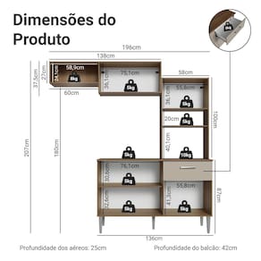 - 25 cm de profundidade nos aéreos e 42 cm nos balcões