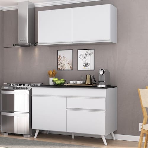 A Cozinha Compacta 2 peças com Armário e Balcão MP3687 Veneza Multimóveis tem um excelente custo benefício e um amplo espaço interno. Produzida em MDP com acabamento acetinado (cerca de 20% de brilho), que garante maior durabilidade e resistência, possui corrediças metálicas (mais leveza no manuseio), pés retrô em polipropileno, que deixam o ambiente mais estiloso, puxadores em ABS e tampo em MDP 15mm com pintura de alta resistência. Os módulos são individuais e você pode montar da maneira que se adaptar melhor ao seu ambiente. O balcão possui tampo removível (compatível com pia de 120 cm). Para deixar sua cozinha mais bonita e organizada, possui compartimento especial para utensílios mais altos.