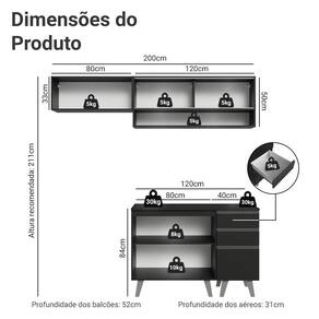 - 52 cm de profundidade nos balcões e 31 cm nos aéreos