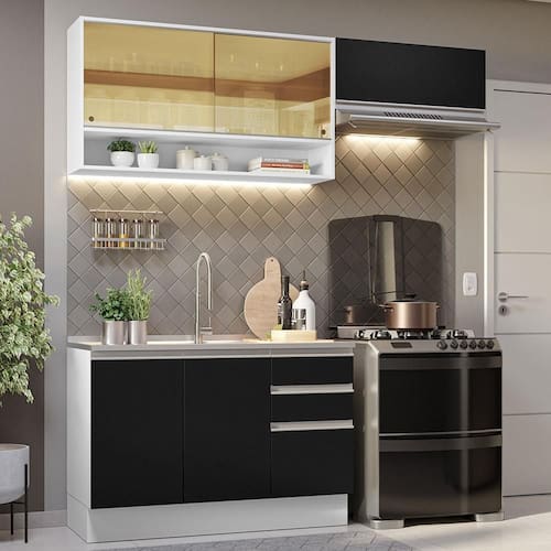 Uma ótima escolha para quem deseja uma cozinha mais prática e confortável é o Armário de Cozinha Completa Glamy, da Madesa.