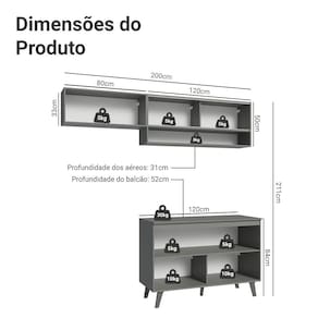 - 52 cm de profundidade no balcão e 31 cm nos aéreos