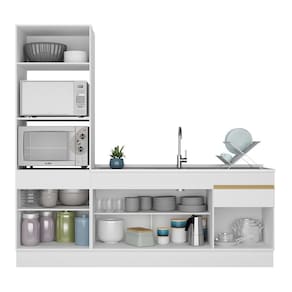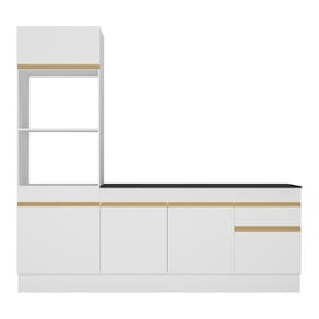 Armário De Cozinha Compacta 212cm Com Rodapé Veneza Multimóveis V2113 Branco/dourado Branco/dourado