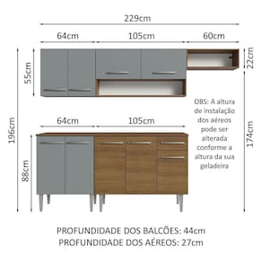 - 44 cm de profundidade no balcão e 27 cm de profundidade no aéreo e no paneleiro