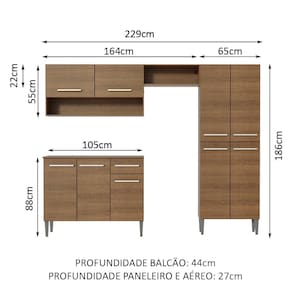 Armário de Cozinha Compacta 229cm Rustic Emilly Pop Madesa 02 XV - Marrom