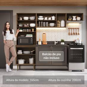 Com amplo espaço interno, este armário é perfeito para organizar utensílios de cozinha, louças e eletros. Além disso, oferece um compartimento ideal para forno ou micro-ondas.