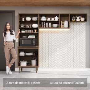 Amplo espaço de armazenamento: Com um design inteligente, o armário oferece ótimo espaço para utensílios, louças e alimentos. Além disso, conta com um compartimento específico para forno ou micro-ondas.