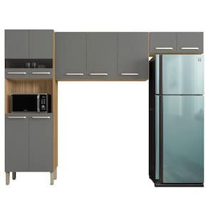 O Armário de Cozinha Compacta 3 Peças 251cm Louis Z06 Freijó/Gris, da Mpozenato, é a solução perfeita para sua cozinha.