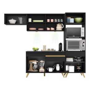 Armário De Cozinha Compacta 252cm Multimóveis V2015/dourado - Preto