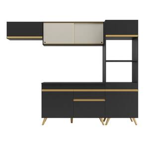 Armário De Cozinha Compacta 252cm Veneza Multimóveis V3691 Preto/dourado Preto/dourado