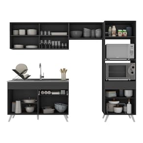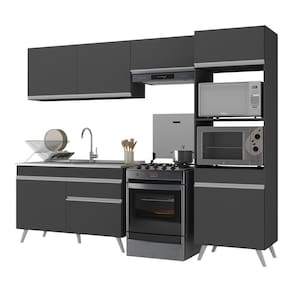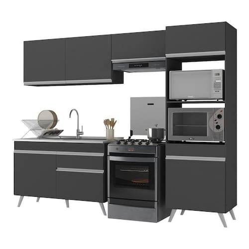 Armário De Cozinha Compacta 252cm Veneza Multimóveis V3693 Preto/branco Preto/branco
