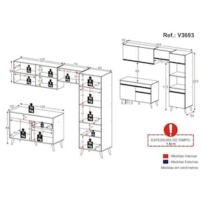 O Armário de Cozinha Compacta 252cm Veneza Multimóveis V3693 tem um excelente custo benefício e um amplo espaço interno. Produzido em MDP com acabamento acetinado (cerca de 20% de brilho), que garante maior durabilidade e resistência, possui corrediças metálicas (mais leveza no manuseio), pés retrô em polipropileno, que deixam o ambiente mais estiloso, puxadores em ABS e tampo em MDP 15mm com pintura de alta resistência. Os módulos são individuais e você pode montar da maneira que se adaptar melhor ao seu ambiente. O balcão possui tampo removível (compatível com pia de 120 cm). Para deixar sua cozinha mais bonita e organizada, possui módulo para forno e microondas, além de compartimento especial para utensílios mais altos.Conteúdo da Embalagem:1 (um) armário aéreo 70cm1 (um) armário aéreo 120cm1 (um) balcão com tampo 120cm1 (um) armário para forno e microondas 62cmDimensões do produto montado:Cozinha - Altura: 203cm | Largura: 252cm | Profundidade: 32cm (aéreos) - 53cm (paneleiro e balcão com tampo)Espaço para fogão/geladeira - Altura: 170cm | Largura: 70cm*Você pode consultar as medidas internas na imagem técnica do produto.*As cores do produto podem sofrer variações de tonalidade de acordo com as configurações do seu dispositivo.Imagem meramente ilustrativa. Decoração e eletros não acompanham o produto.O produto será entregue desmontado e não disponibilizamos o serviço de montagem. Acabamento: Pintura Acetinada Texturizada | Cor: Preto/Dourado | Tonalidade: Preto | Material: MDP | Referência do Modelo: V3693 | Coleção: Veneza | Instruções de Cuidado: Limpar com pano seco para retirar o pó. Não utilizar lustra móveis e produtos químicos ou abrasivos à limpeza. | Sistema de Montagem: O produto acompanha manual de montagem e kit ferragem. O produto será entregue desmontado e não disponibilizamos o serviço de montagem. | Produto Composto por: 1 armário aéreo 70 cm, 1 armário aéreo 120 cm, 1 balcão com tampo 120 cm, 1 armário para forno e microondas 62 cm, manual de montagem e kit ferragem. | Altura Montado: 203 | Largura Montado: 252 | Profundidade Montado: 53 | Tamanho (L x A x P): 252 x 203 x 53 | Peso do Produto: 98 | Garantia do Fabricante: 3 | Fabricante: Multimóveis | Requer Montagem: Sim | Quantidade de Portas: 7 | Quantidade de Gavetas: 1 | Quantidade de Prateleiras: 6 | Quantidade de Puxadores: 8 | Quantidade de Pés: 9 | Porta com Vidro: Não | Corrediça: Metálica | Material do Puxador: ABS | Material dos Pés: Polipropileno | Acompanha Pia Inox: Não | Balcão 120 cm compatível para uso de pia: Sim | Tampo Incluso: Sim | Quantidade de Tampos: 1 | Material do Tampo: MDP | Espessura do Tampo: 1.5 | Com Prateleiras: Sim | Produto: Cozinha Compacta | Tipo: Modular | Altura (cm): 203 cm | Largura (cm): 252 cm | Profundidade (cm): 53 cm | Estado de Origem: RS | Produto precisa de Montagem?: Sim, sugerimos a contratação do nosso serviço de montagem (para os CEPs em que o serviço está disponível) ou de algum profissional experiente de sua preferência | Ubicação do móvel: Não aplica | Altura do Produto com Embalagem: 37 | Largura do Produto com Embalagem: 65 | Comprimento do Produto com Embalagem: 188 | Peso do Produto com Embalagem: 98 | Nome do Produto no Fornecedor: Armário de Cozinha Compacta 252cm Veneza Multimóveis V3693 Preto/Dourado | Descrição do Tamanho: (L x A x P): 252 x 203 x 53 cm | Tempo de Garantia: 3 meses | Destaque 1: MDP com acabamento acetinado: maior durabilidade e resistência. | Destaque 2: Balcão com tampo removível. | Destaque 3: Corrediças metálicas (mais leveza no manuseio) e pés retrô em polipropileno: ambiente mais estiloso. | Destaque 4: Tamanho do Produto Montado (L x A x P): 252 x 203 x 53 cm | Destaque 5: Os módulos são individuais e você pode montar da maneira que se adaptar melhor ao seu ambiente. Garantia de 90 dias contra defeitos de fabricação. | Marca: Multimóveis | Acessórios incluídos: N/A Cor: Preto/Branco