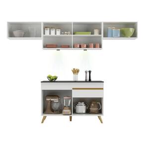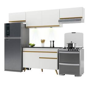 Armário De Cozinha Compacta 260cm Com Leds Veneza Up Multimóveis V2022 Branco/dourado Branco/dourado
