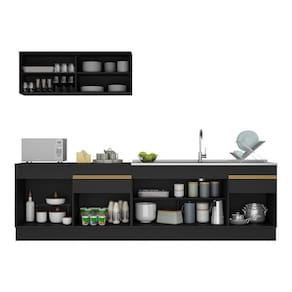 Armário De Cozinha Compacta 270cm Com Rodapé Veneza Multimóveis V2112 Preto/dourado Preto/dourado