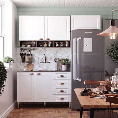 A Cozinha Safira traz design e sofisticação, a combinação perfeita entre beleza e funcionalidade. Desenvolvida em MDP, o que garante qualidade e durabilidade. E o estilo Provençal, que o queridinho do momento! Conta puxadores Bronze e pés com regulagem de altura no acabamento PS Cromado.