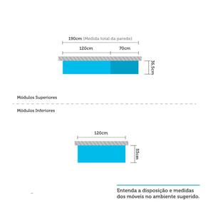 Medidas Gerais do Ambiente: Superior: 75 x 190 x 36,5 -Altura x Largura x Profundidade - cm- Inferior: 82,5 x 120 x 53 -Altura x Largura x Profundidade - cm-