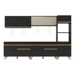 Armário De Cozinha Compacta 302cm Com Leds Veneza Up Multimóveis V2014 Preto/dourado Preto/dourado