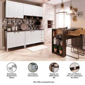 Armário de Cozinha Compacta 4 Peças e Bancada Gourmet Safira Luciane Móveis - Branco