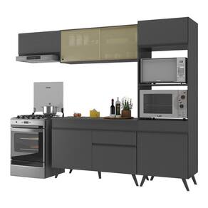 Conteúdo da Embalagem: 1 (um) armário aéreo 70cm 1 (um) armário aéreo com portas de vidro 120cm 1 (um) balcão com tampo 120cm 1 (um) armário para forno e microondas 62cm