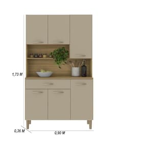 Conta com 6 portas, uma gaveta espaçosa, e espaço para acomodar aparelhos de utilidade doméstica. Combinação perfeita de beleza, resistência e durabilidade!