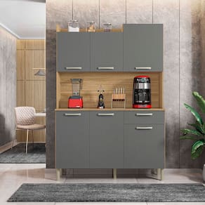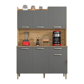 Armário de Cozinha Compacta 6 Portas e 1 Gaveta 121cm Florença Freijó/Grafite - Pallazio