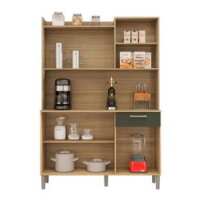As 6 portas do Armário Florença proporcionam amplo espaço para armazenar seus utensílios de cozinha, panelas e mantimentos, mantendo tudo sempre ao alcance. A gaveta espaçosa é ideal para guardar talheres e outros pequenos itens, ajudando a manter a cozinha limpa e organizada, facilitando as tarefas do dia a dia.