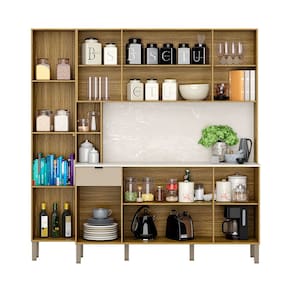 Suas 9 portas permitem a organização eficiente de diferentes itens, enquanto a gaveta adicional é ideal para acomodar objetos menores, como talheres e acessórios. A distribuição bem pensada deste armário facilita o dia a dia, proporcionando mais praticidade e agilidade nas atividades culinárias.