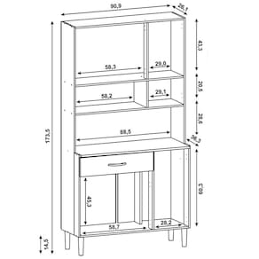 Dimensões do Produto (L x A x P) Largura: 90,9 cm. Altura: 173,5 cm. Profundidade: 36,3 cm. Peso: 33,91 Kg.