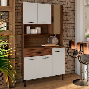 Você está procurando uma Cozinha Compacta que tenha espaço para tudo o que você precisa? Então a Cozinha Compacta 6 Portas 1 Gaveta Bruna K02 Nogueira/Off White/Ripado, da Mpozenato, é ideal pra você!