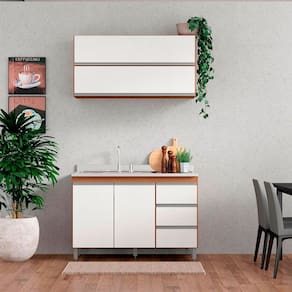 Conte?do da Embalagem: 02 Arm?rio A?reo Basculante Modulado Sabrina 120x30cm 01 Balc?o para Pia de Cozinha Modulada Sabrina 120x88cm