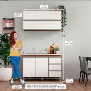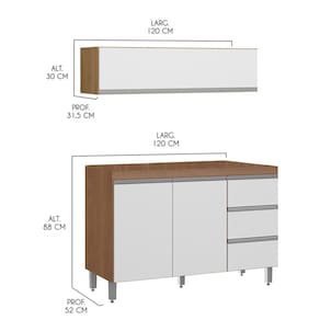 Dimens?es do Balc?o para Pia de Cozinha Modulada Sabrina 120x88cm: Altura: 88 cm Largura: 120 cm Profundidade: 52 cm Peso: 30 kg
