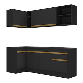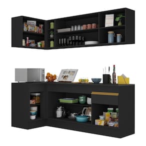 Armário De Cozinha Compacta De Canto Com Rodapé Veneza Multimóveis V2093 Preto/dourado Preto/dourado