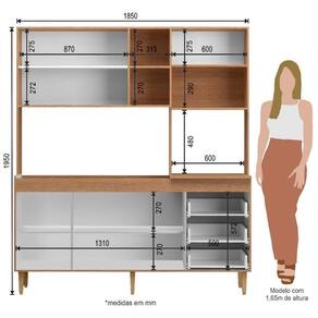 Armário de Cozinha Compacta em MDP Mel e Preto 1,95 x 1,85 m Splendore - Medidas