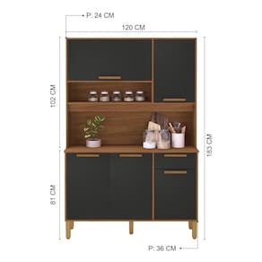 O Armário de Cozinha Grécia da Fidelitá é ideal para quem busca uma solução compacta, elegante e prática para organizar o ambiente. Com acabamento em pintura UV na cor chumbo fosca e freijó amadeirada, oferece um visual moderno que se adapta facilmente a diferentes estilos de decoração.