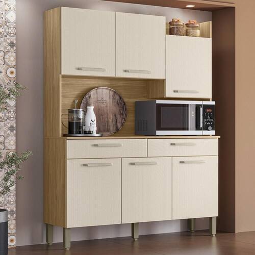 Armário de Cozinha Compacta MDF 6 Portas Modena Plus - Bege Claro