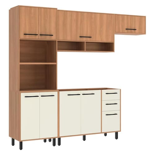 Conteúdo da Embalagem: 1 (um) Armário para Forno e Micro-ondas 65cm 1 (um) Armário Aéreo 120cm 1 (um) Armário Aéreo 70cm 1 (um) Balcão sem Tampo 120cm Manual de Montagem Kit Ferragem