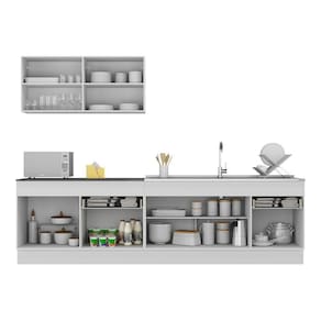 Conteúdo da Embalagem: 1 (um) armário aéreo 120cm 1 (um) balcão com tampo 120cm 1 (um) balcão com tampo 150cm 1 (um) kit com rodapés