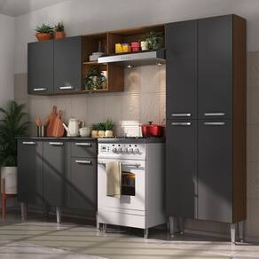 Conteúdo da Embalagem: 1 (um) armário aéreo com nicho lateral e horizontal de 166cm 1 (um) paneleiro duplo de 62cm 1 (um) balcão com tampo de 105cm