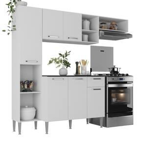 Armário De Cozinha Compacta Smart Multimóveis Mp2220 Branco Branco O Armário de Cozinha Compacta Smart Multimóveis MP2220 é produzido em MDP 12/15mm com acabamento acetinado (cerca de 20% de brilho), este armário oferece durabilidade e resistência. Com amplo espaço interno, possui 6 portas com dobradiças metálicas, 1 gaveta com corrediças metálicas (mais leveza no manuseio), nichos e prateleiras para armazenar todos os itens essenciais da cozinha, mantendo-os ao alcance das mãos e bem organizados. O espaço dedicado para fogão ou geladeira oferece ainda mais versatilidade, permitindo que você aproveite ao máximo o espaço disponível. Além disso, conta com pés em polipropileno com regulagem de altura, que proporcionam estabilidade, e puxadores em ABS que agregam um toque moderno e elegante. Versátil, a porta do paneleiro conta com 3 opções de montagem, possibilitando que você escolha entre ela estar na parte de cima, de baixo ou no meio. Os módulos NÃO podem ser montados separadamente e o balcão NÃO é compatível para utilização de pia. Esta cozinha é uma ótima opção para quem busca funcionalidade e praticidade no ambiente culinário! Conteúdo da Embalagem: 1 (um) Paneleiro 30,4cm 1 (um) Armário Aéreo 150,6cm 1 (um) Balcão com Tampo 90cm Manual de Montagem Kit Ferragem