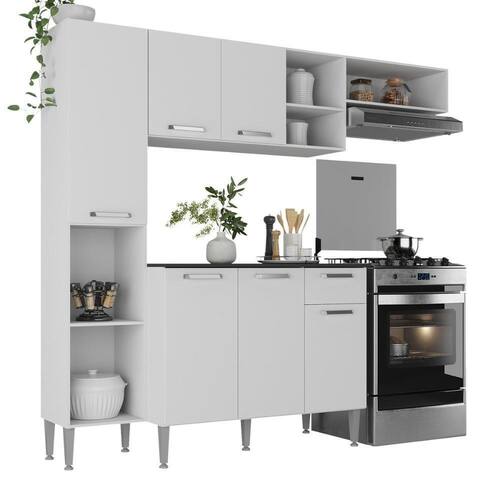 Dimensões do produto montado: Cozinha - Altura: 184cm | Largura: 181cm | Profundidade: 45cm Espaço para Fogão/Geladeira - Altura: 162cm | Largura: 61cm *Você pode consultar as medidas detalhadas na imagem técnica do produto.